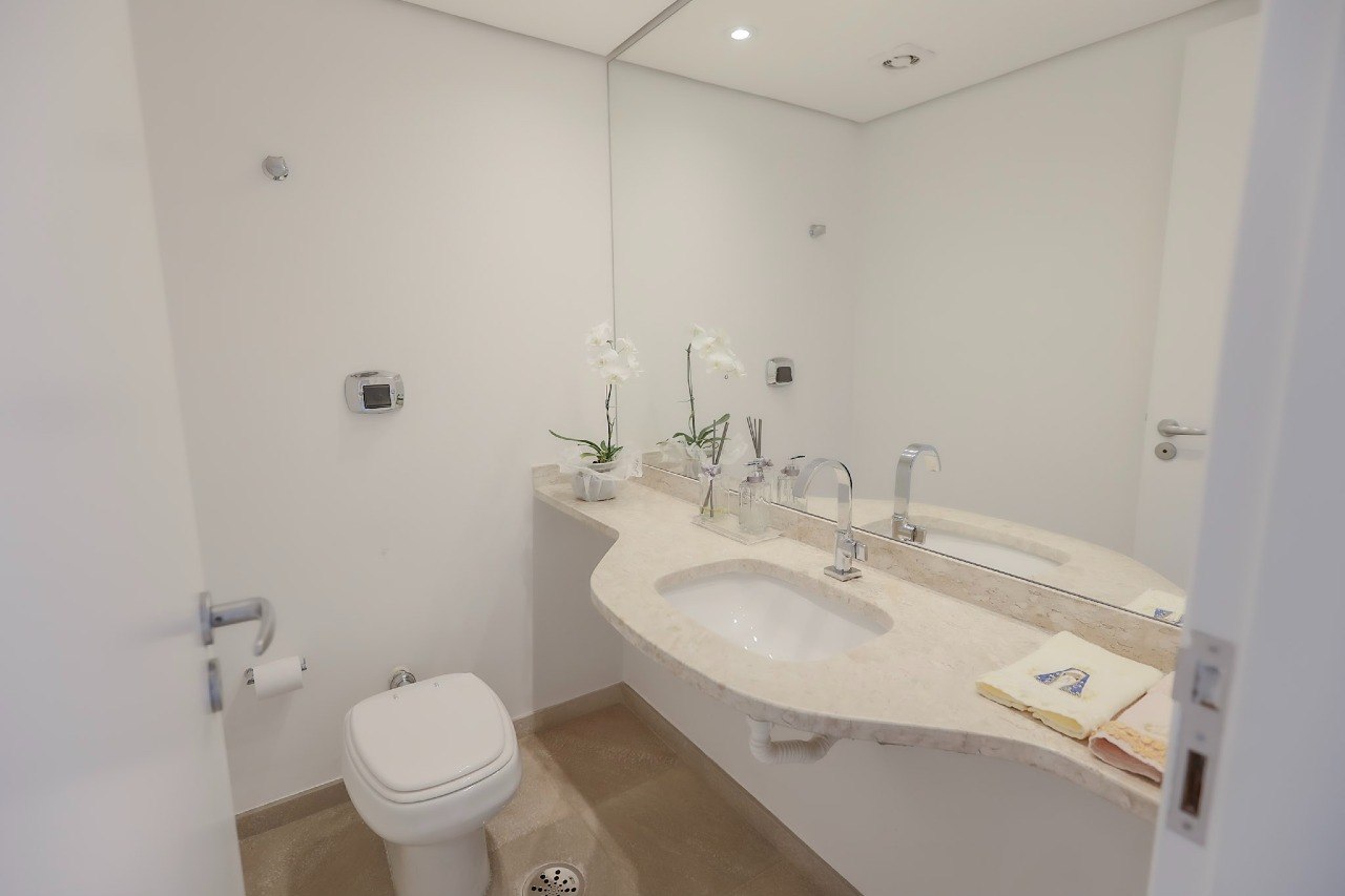 Entre os diferenciais, destacam-se ar-condicionado, área privativa, área de serviço, lavanderia, lavabo, interfone e armários embutidos na cozinha e nos dormitórios, além de um espaçoso closet que agrega praticidade ao dia a dia.