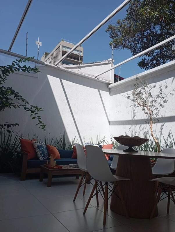 Quintal aconchegante com churrasqueira e cobertura retrátil, perfeito para receber amigos e a família.
