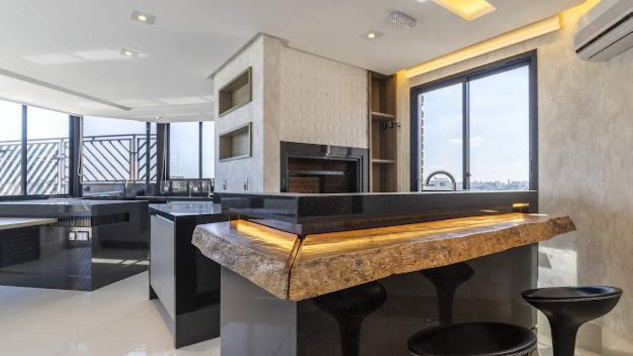 No pavimento superior, aproveite momentos inesquecíveis com amigos e família no espaço gourmet completo com churrasqueira, ao lado de uma piscina privativa com cascata – perfeita para relaxar e contemplar o skyline paulistano.